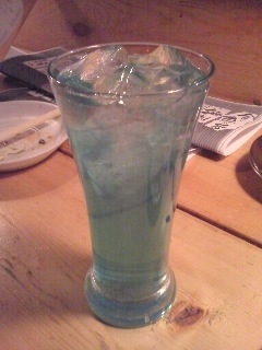 行ったお店も店員の人がテンション高くて、オススメメニューを言ってくれるから大助かり。しかもどれも美味かった!!お店のお兄さんに「酒飲みってばれちゃいますよ」といわれるような一品ばかり頼んでました。そして馬刺しも美味かったvv 鹿刺しが食えなかったのが非常に悔やまれるところですが・・・。ちなみに画像の飲み物は『グリムジョー・スペシャル』です(笑) ってほんとは、お店の女の子のオリジナルカクテルです。『何色がいいですか?』と訊かれて、あやうく『ウルキオラ色』(ねえさん)『グリ色』(私)といいそうになるどこまでも可哀相な私達・・・。注文は『(晴れやかな)青色で!』とお願いしました(苦笑) そういや店内ではなぜかスターウォーズのDVDが流れてて、なんかよくわからんけどなかなかカオスなお店でした。